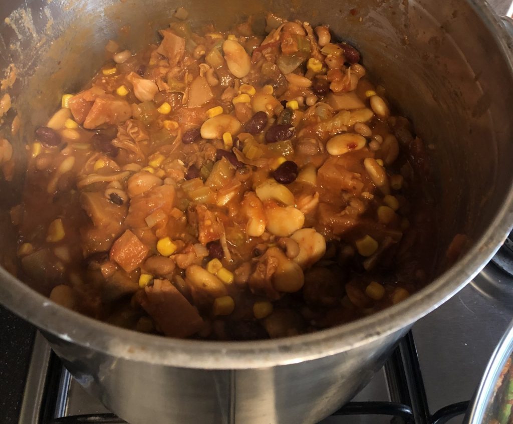 Haddock on a bed of Lentils in Tomato and Chilli Sauce